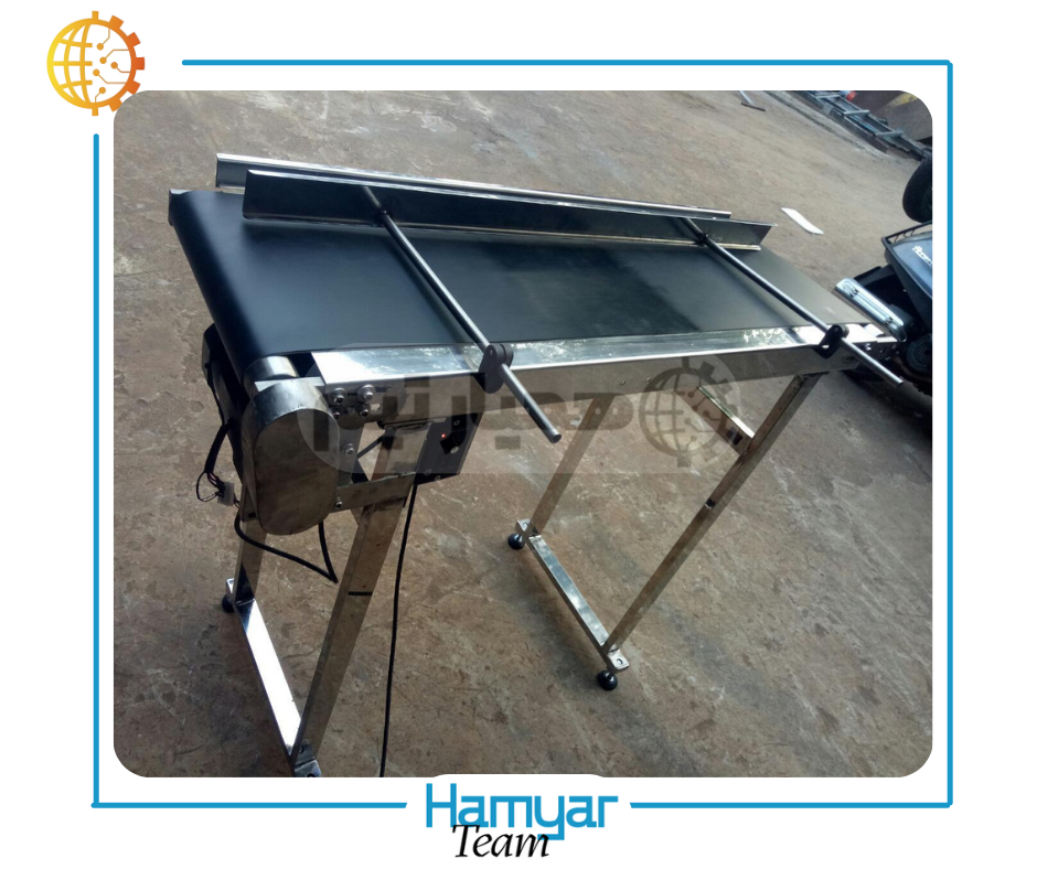 نوارنقاله جت پرینتر ۱.۵ متری ماشینی است که وظیفه انتقال اقلام بستهبندیشده (بطری، جعبه، ساشه و…) را در زیر هد جت پرینتر بر عهده دارد. پایداری و حرکت یکنواخت این نوارنقاله مستقیماً بر کیفیت چاپ تأثیر میگذارد. سیستم محرکه این دستگاه از یک موتور الکتریکی (معمولاً با توان پایین) و یک گیربکس تشکیل شده که وظیفه کاهش سرعت و افزایش گشتاور را بر عهده دارد. تسمه نقاله از جنس PVC مقاوم و بهداشتی است که برای صنایع مختلف ایمن و مناسب است.