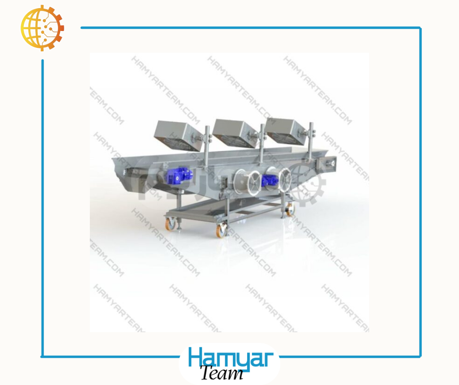 نوار نقاله خنککننده (Cooling Conveyor) نوعی کانوایر صنعتی است که برای کاهش دمای محصولات در حین انتقال طراحی شده است. این دستگاه بهطور همزمان عملیات جابجایی و خنکسازی را انجام میدهد، و باعث کاهش زمان توقف تولید و افزایش راندمان میشود.
